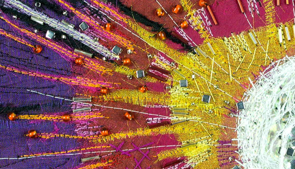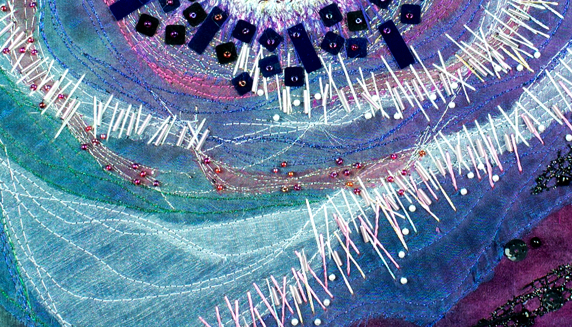 I am a decorative textile artist living and working in the West Midlands, UK. My artworks are visual transcriptions from the beauty I see in the wonder of the universe. I believe we are all, in a very real and profound sense, part of the Cosmos. Born from it, our fate is deeply connected to it.