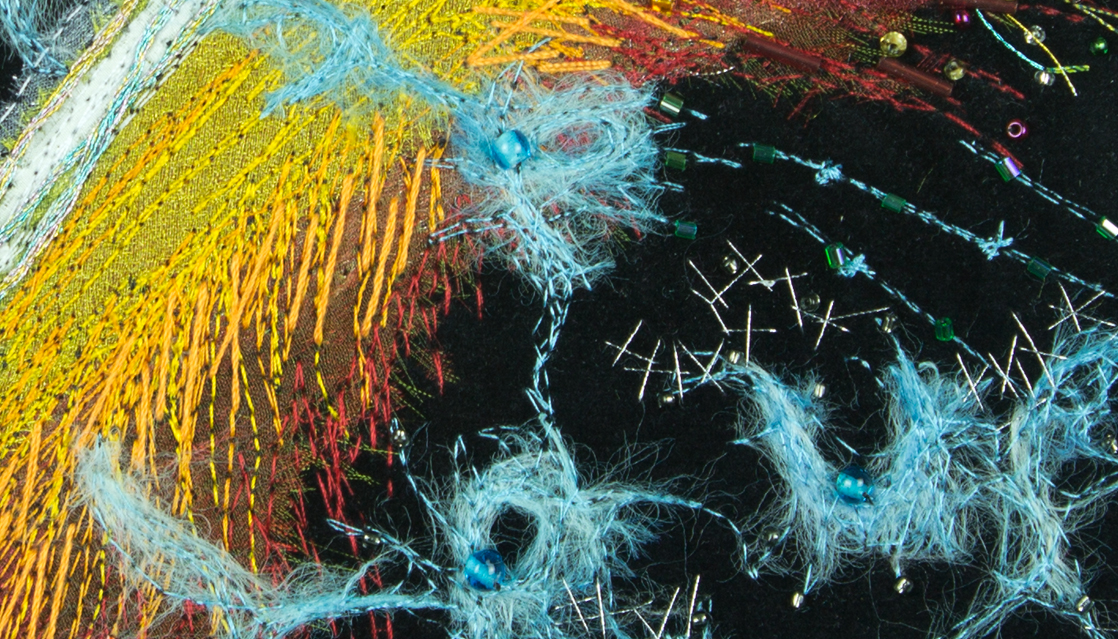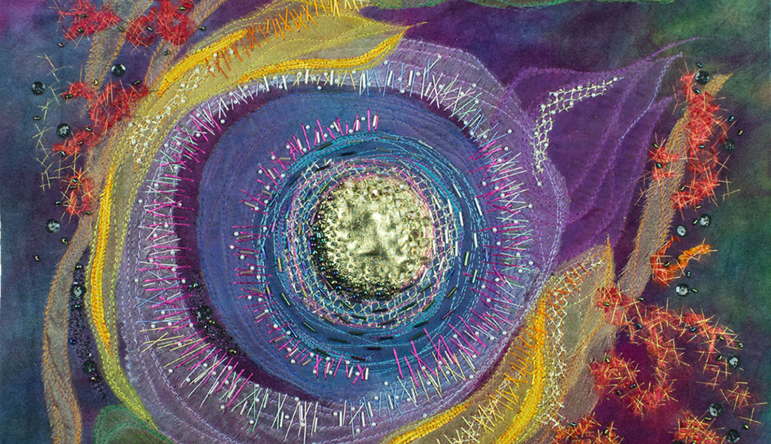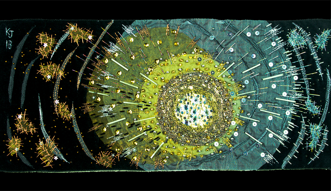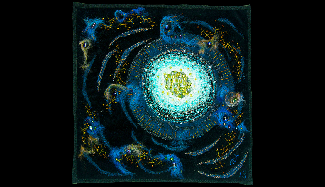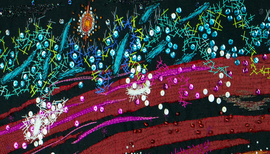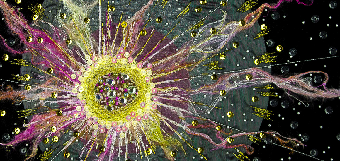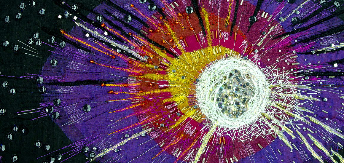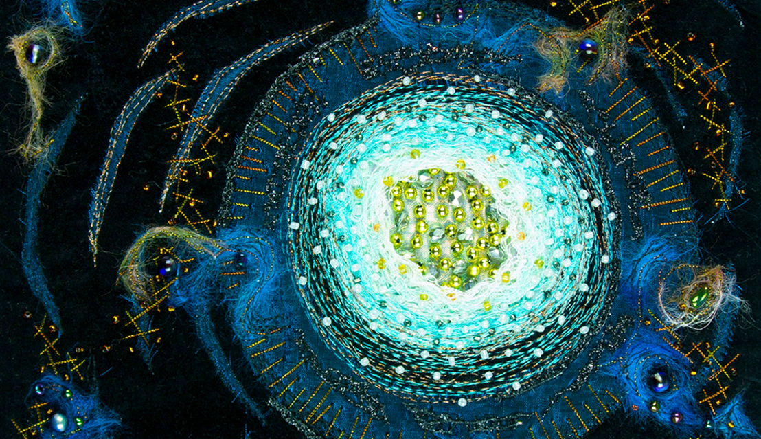 I am a decorative textile artist living and working in the West Midlands, UK. My artworks are visual transcriptions from the beauty I see in the wonder of the universe. I believe we are all, in a very real and profound sense, part of the Cosmos. Born from it, our fate is deeply connected to it.