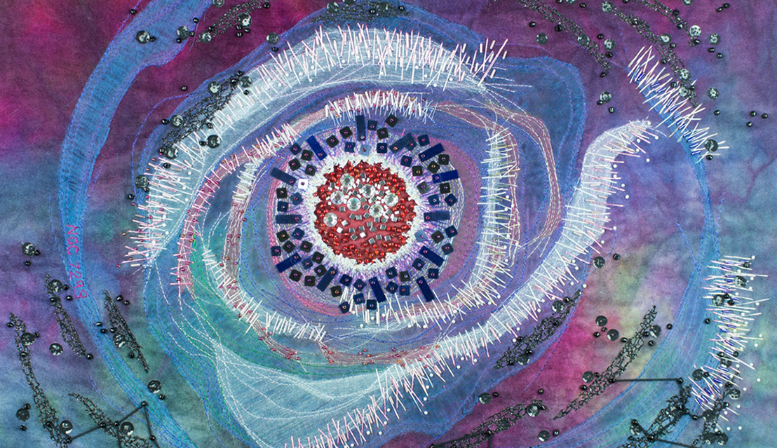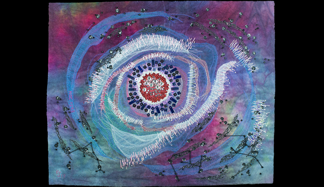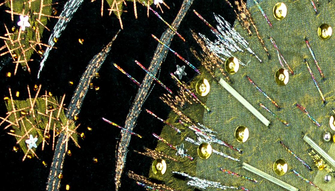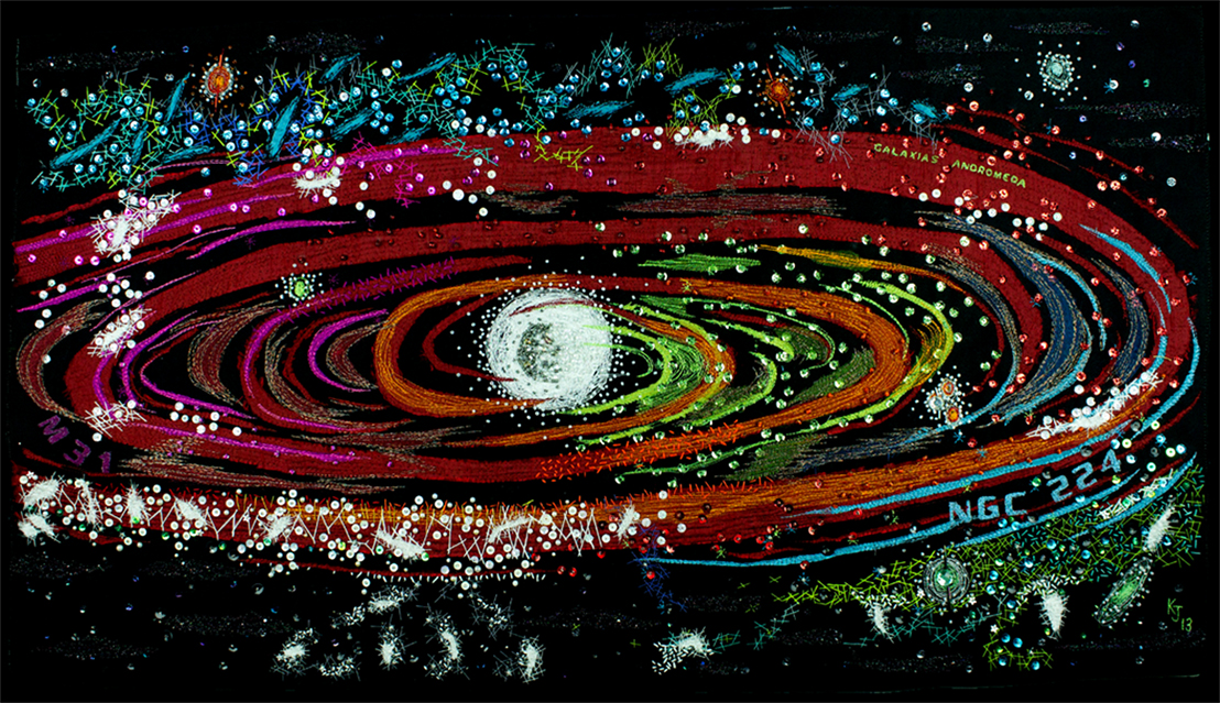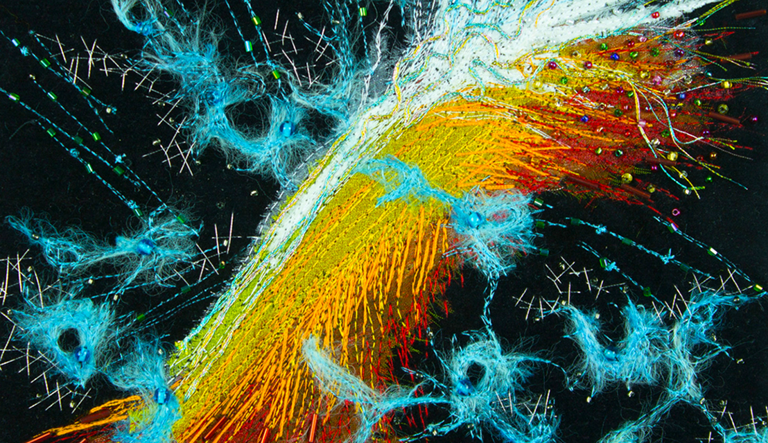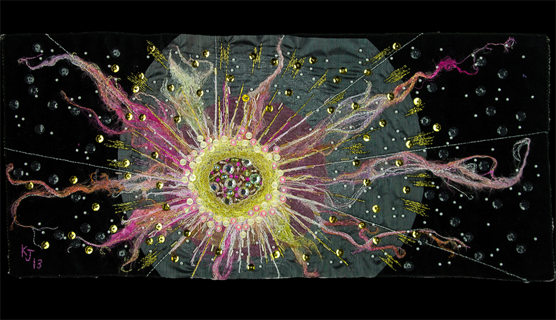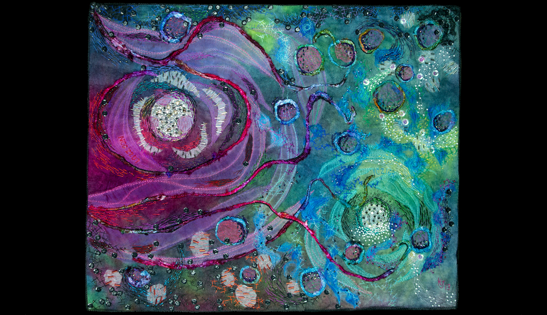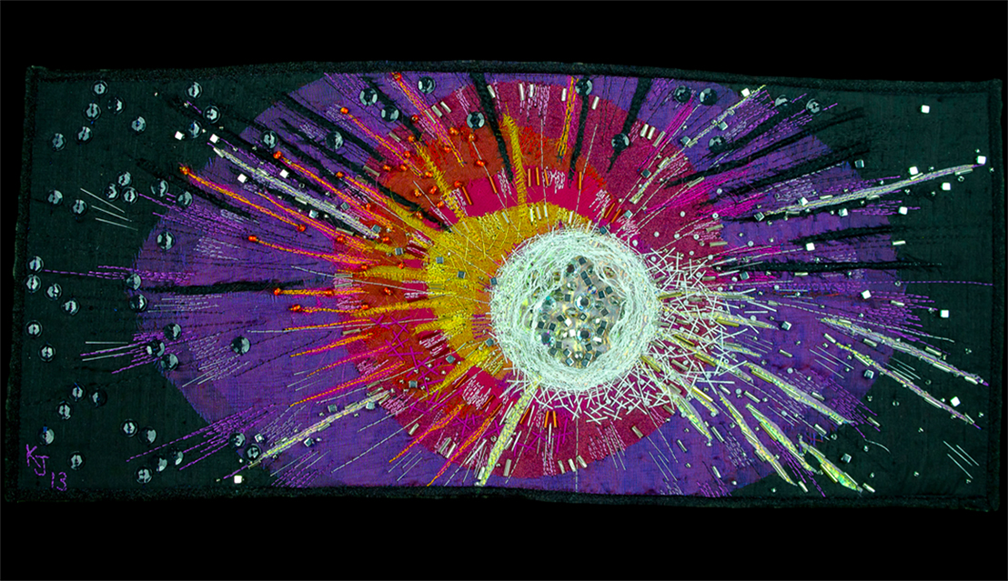 I am a decorative textile artist living and working in the West Midlands, UK. My artworks are visual transcriptions from the beauty I see in the wonder of the universe. I believe we are all, in a very real and profound sense, part of the Cosmos. Born from it, our fate is deeply connected to it.