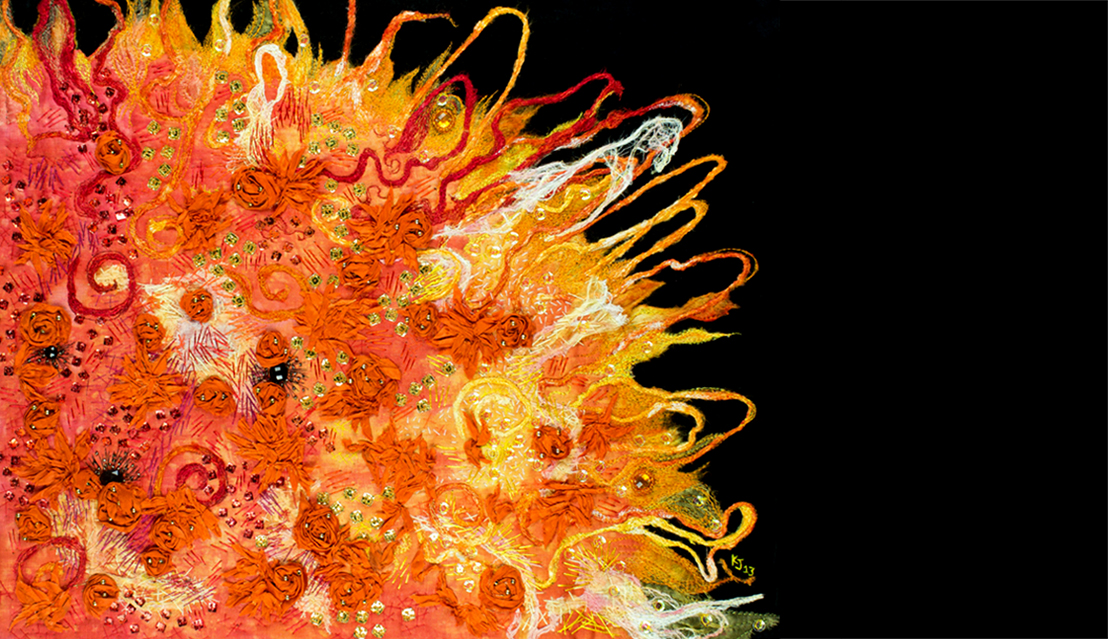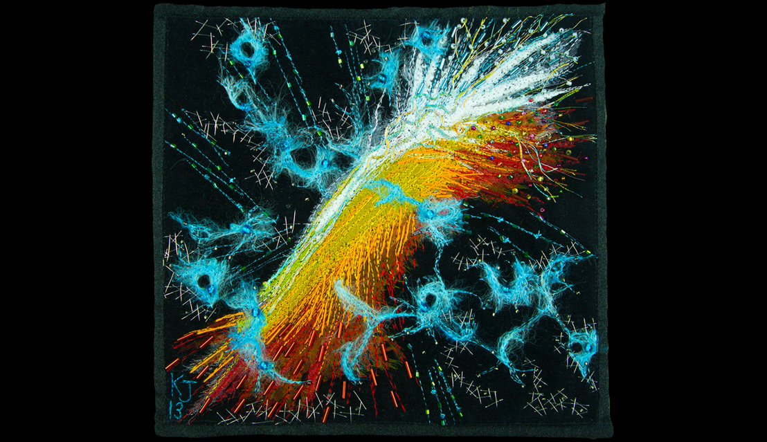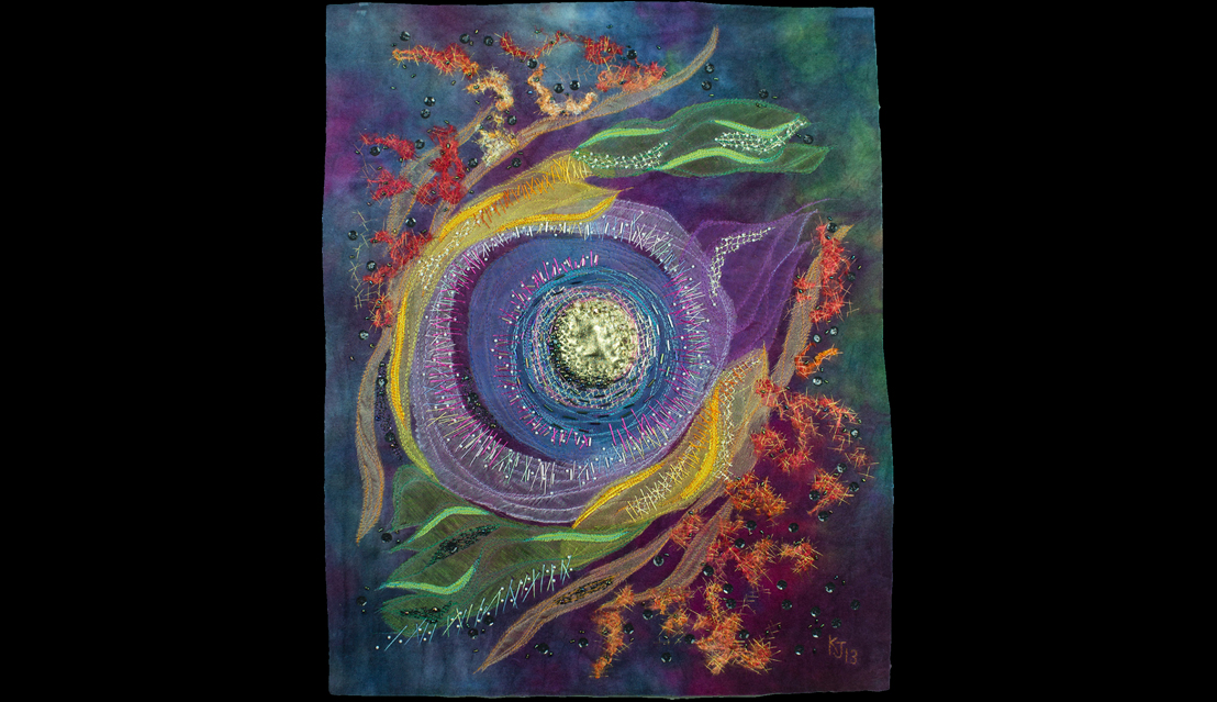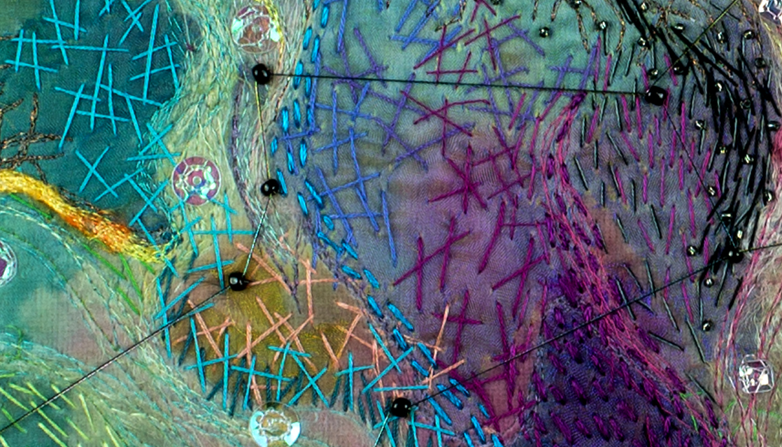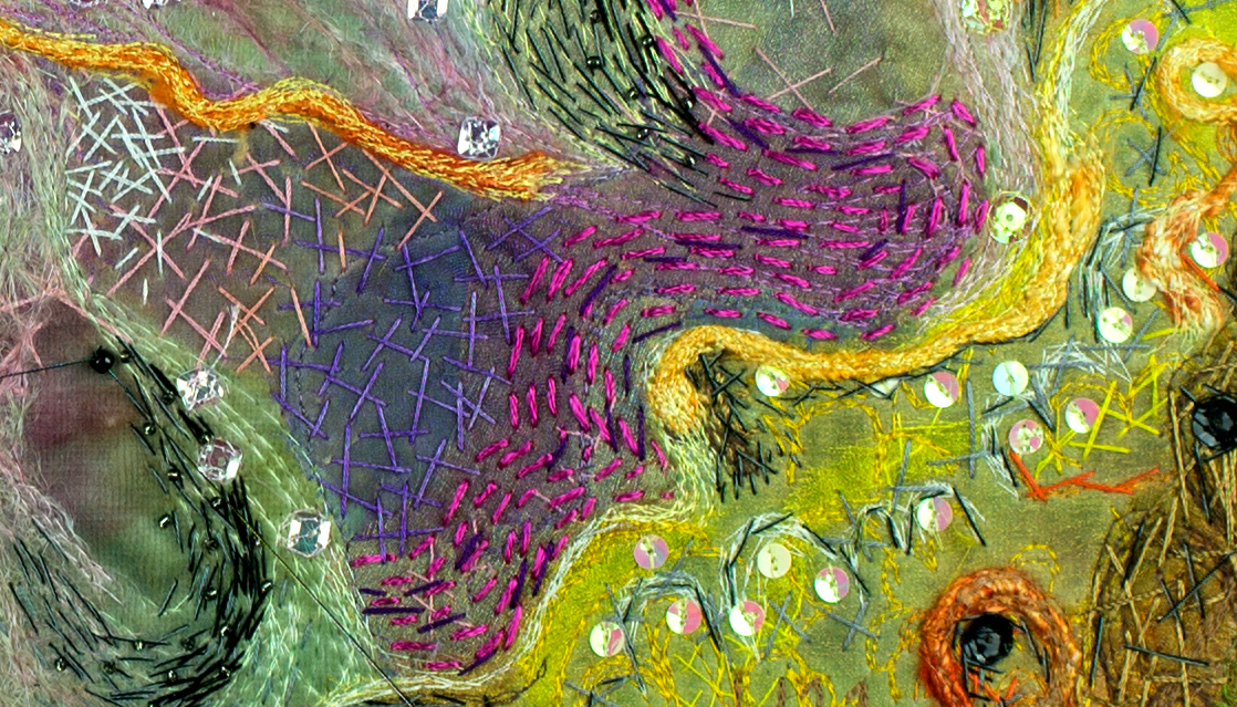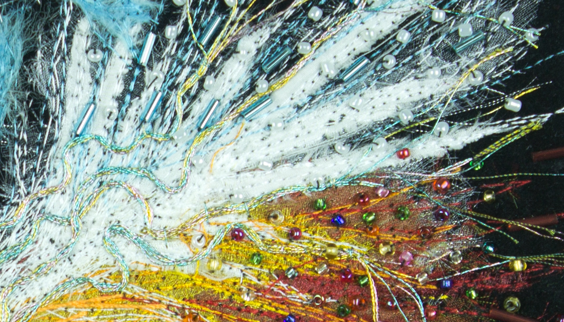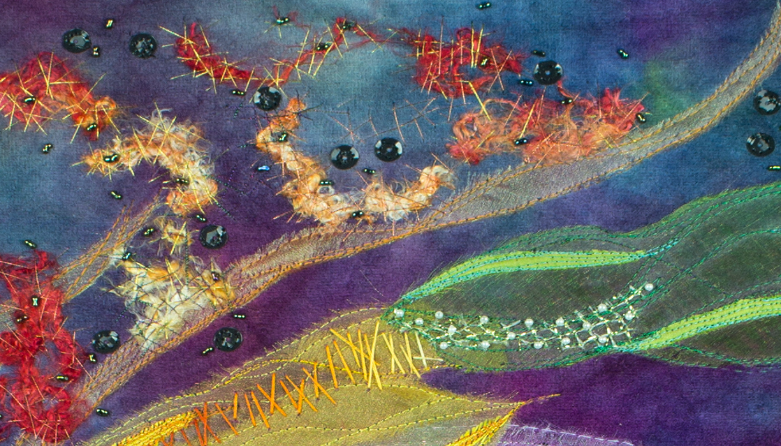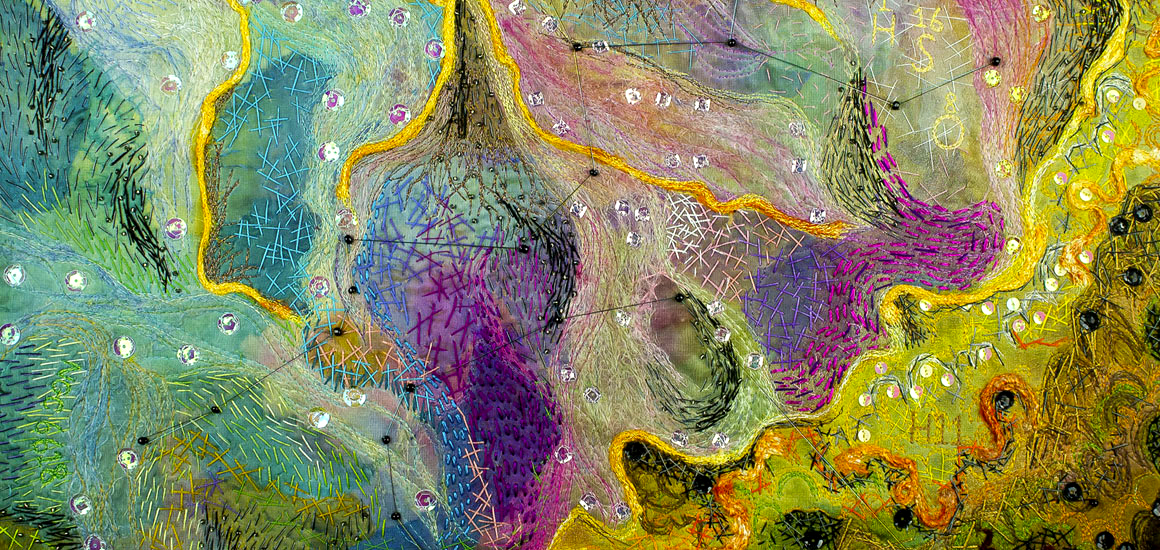 I am a decorative textile artist living and working in the West Midlands, UK. My artworks are visual transcriptions from the beauty I see in the wonder of the universe. I believe we are all, in a very real and profound sense, part of the Cosmos. Born from it, our fate is deeply connected to it.